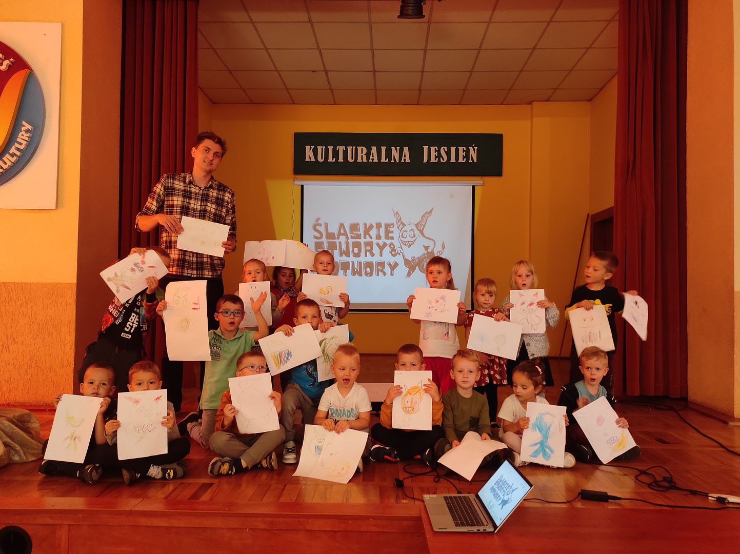Zorganizowaliśmy 12 warsztatów dla uczniów szkół podstawowych Powiatu Gliwickiego. Podczas zajęć uczniowie poznali legendy o stworach i potworach, a wzięli udział w zajęciach artystycznych w formie teatru obrazkowego Kamishibai. Technika teatru Kamishibai polega na opowiadaniu historii, wykorzystując plansze z obrazkami oraz drewniany parawan, za którym przedstawiane są kolejne fragmenty legend .